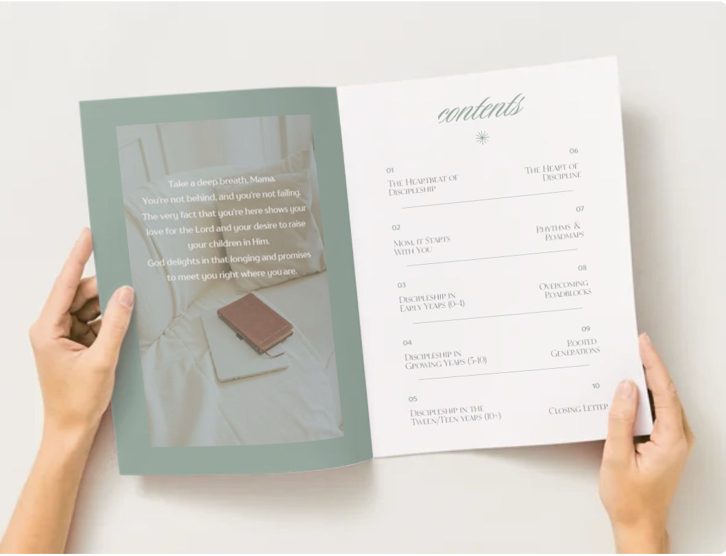 Inside these 80 pages, you’ll find a clear, biblical path to walk with confidence as you disciple your children day by day—not through perfection, but through faithful presence and intentionality.