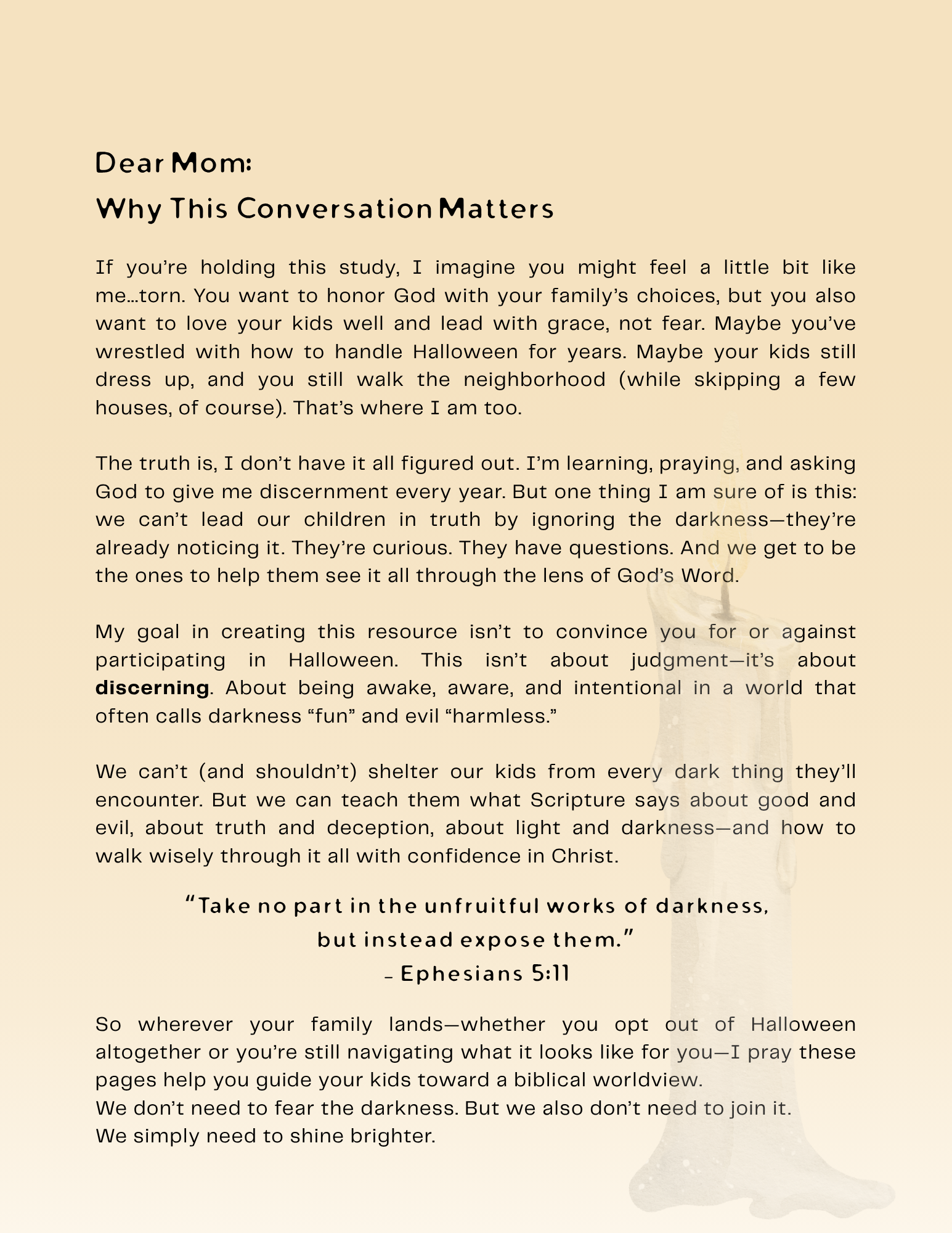 This guide walks you through the origins of Halloween, what Scripture says about good and evil, and how to help your kids walk in discernment and peace—not fear.