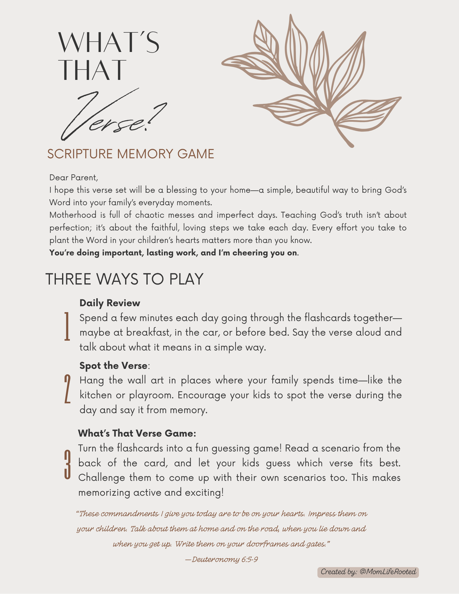 - Flashcards with the verse on one side and real-life scenarios on the other (PDF)